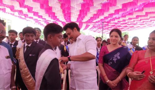 It was a moment of immense pride as the badges were ceremoniously pinned by our Honourable Minister for School Education, Mr. Anbil Mahesh Poyyamozhi, in the gracious presence of District Collector Mrs. Kalaiselvi Mohan, and our respected Principal Madam.